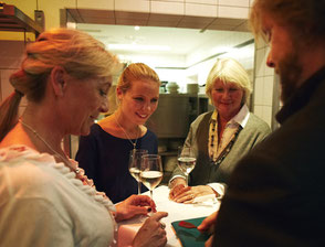 Neugierige, strahlende Gesichter an einem kulinarischen Abend in Hamburg -
