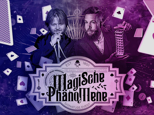 Die Baker Street Gesellschaft der magischen Phänomene trifft sich regelmäßig, um Ihren Gästen einen fesselnden Abend voll atemberaubender und interaktiver Magie zu präsentieren und jene, die meinen bereits alles gesehen zu haben, wieder an kleine Wunder glauben zu lassen. Erlebt magische Tricksereien, Gedankenlesen und Fingerfertigkeiten direkt vor euren Augen und erhaltet die Chance, in den illustren Kreis der Gesellschaft der magischen Phänomene aufgenommen zu werden, wenn ihr euch als würdig erweist.