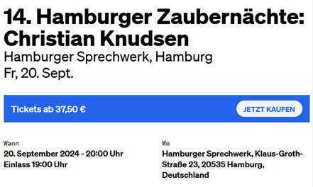 Am 21. Mai 2016 war ich als Zauberer aus Hamburg ins kleine, charmante Theater Cella Magica nach Bielefeld angereist und dort mit meinem Soloprogramm Christian Knudsens Salonwunder zu Gast (siehe Foto) - aufgrund der großen Nachfrage sowohl abends als auch nachmittags.