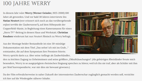 Lesen Sie unten, was der Laudator und damalige Vizepräsident des Vereins Andreas Fleckenstein in der Zeitschrift Magie dazu schrieb: